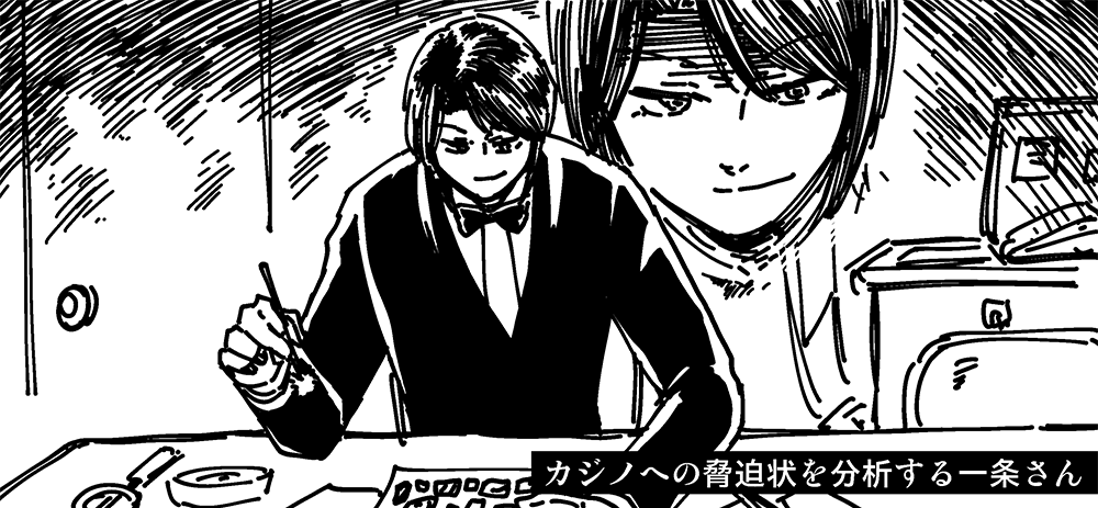 カジノに届いた脅迫文や怪文書の差出人、または嫌がらせの犯人を探る一条さん。