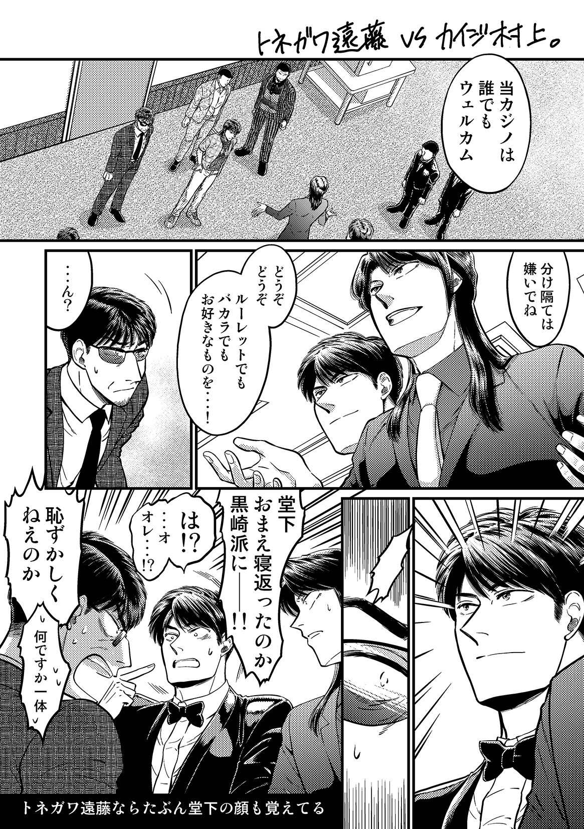 原作カイジの世界線にトネガワ世界線の遠藤さんが紛れ込んだら……トネガワ世界線の利根川チームにイチジョウ世界線の芦田さんが紛れ込んだら……を妄想しました。